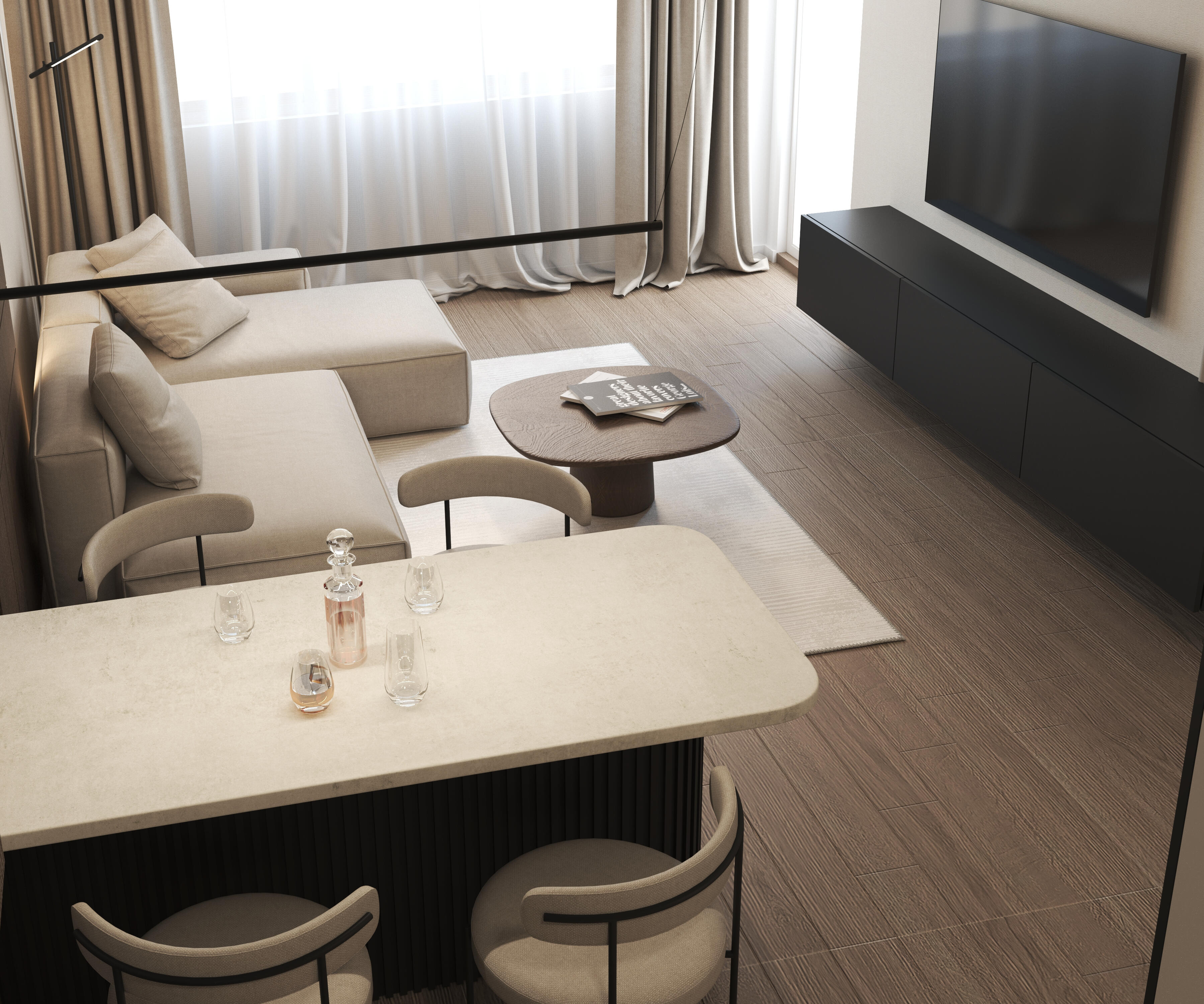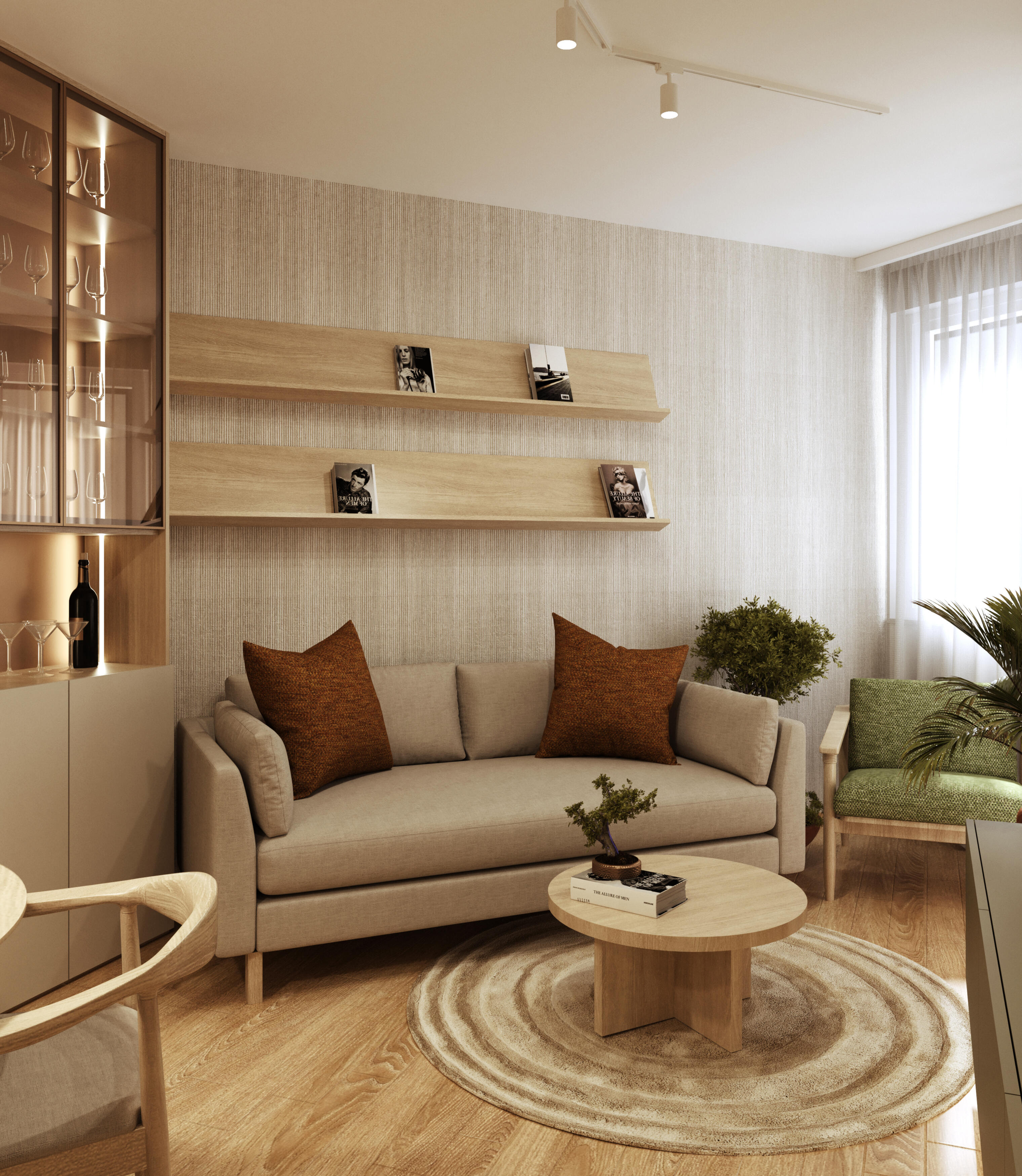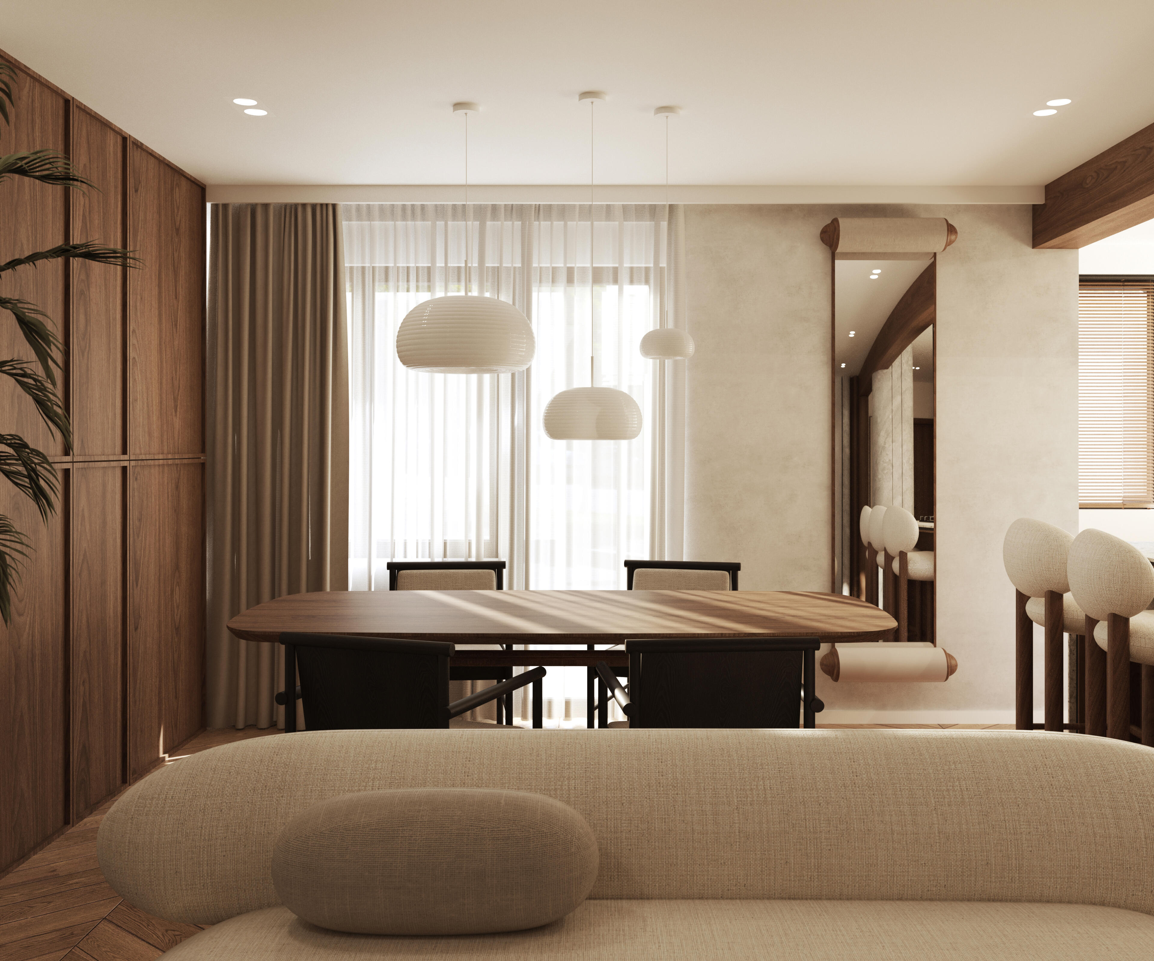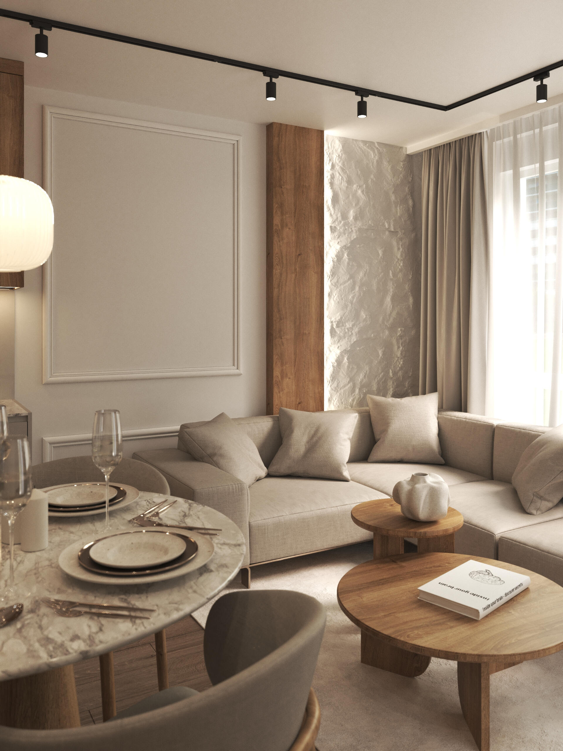 Dizajn enterijera dnevne sobe sa trpezarijom, Temerin